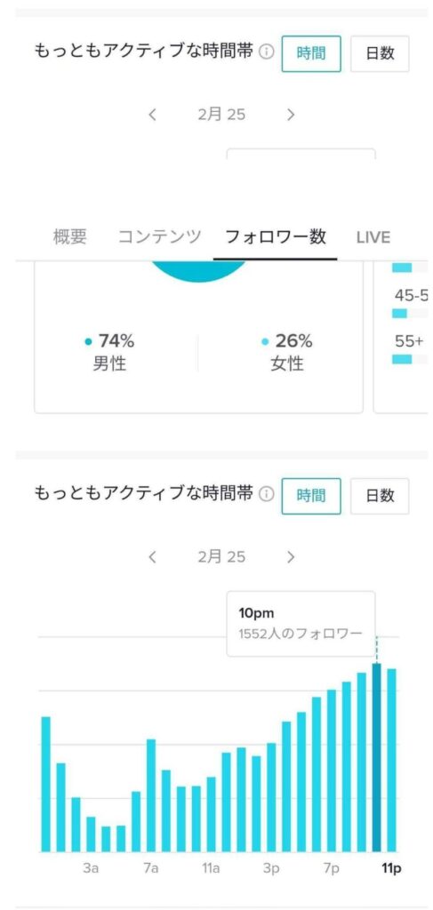 TikTokのフォロワーインサイトを活用すれば、以下のような情報が分かります。