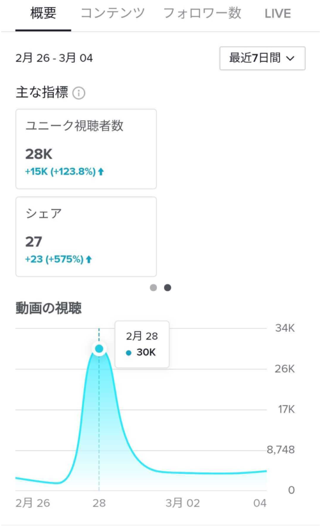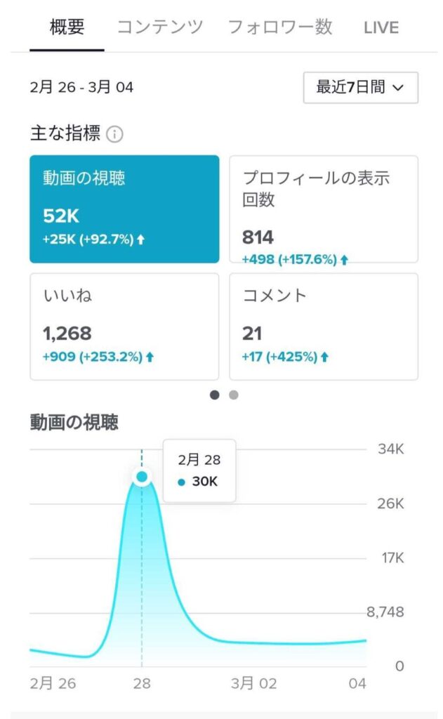 例えば、ある動画を投稿した直後にフォロワーが急増した場合、