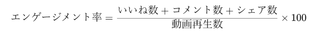エンゲージメント率とは、投稿に対するユーザーの反応(いいね、コメント、シェアなど)の割合を示します。この指標は、フォロワーや視聴者がどれだけ投稿に興味を持っているかを測るために使用されます。